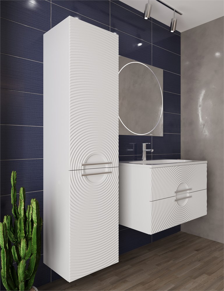 Стильный дизайн – фрезеровка фасадов в итальянском стиле создает объем и придает дизайнерской тумбе в ванную особую красоту