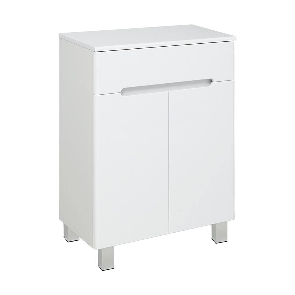 Тумба в ванную (полупенал) с одним выдвижным ящиком и двумя распашными дверками. В нижнем отделении - одна внутренняя полка. Петли со встроенным доводчиком, ящик на шариковых направляющих полного выдвижения.