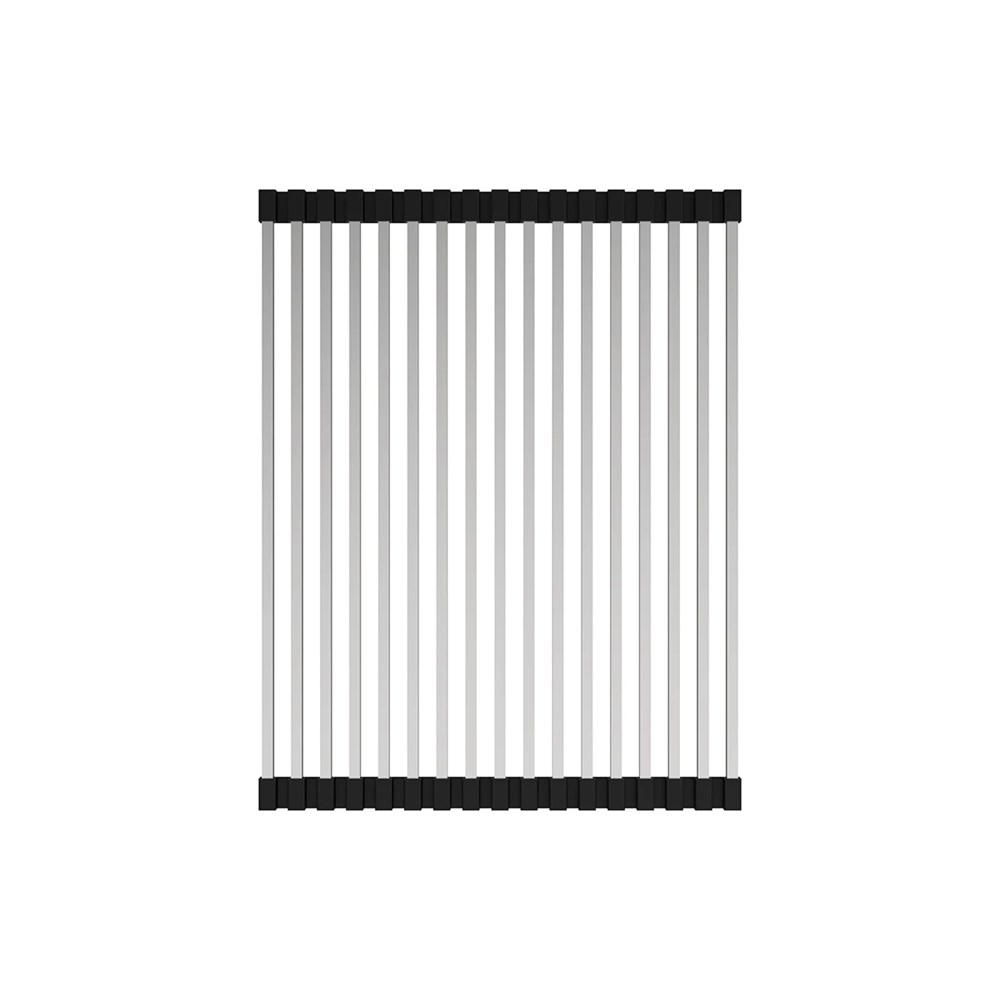 • Стиль и комфорт: ролл-мат – стильный коврик, состоит из прутьев высококачественной нержавеющей стали SUS 304, прочно закрепленных по краям черной силиконовой основой. Силикон обеспечивает мягкий контакт коврика с поверхностью стола или мойки, не царапает поверхность и не гремит при сворачивании и разворачивании