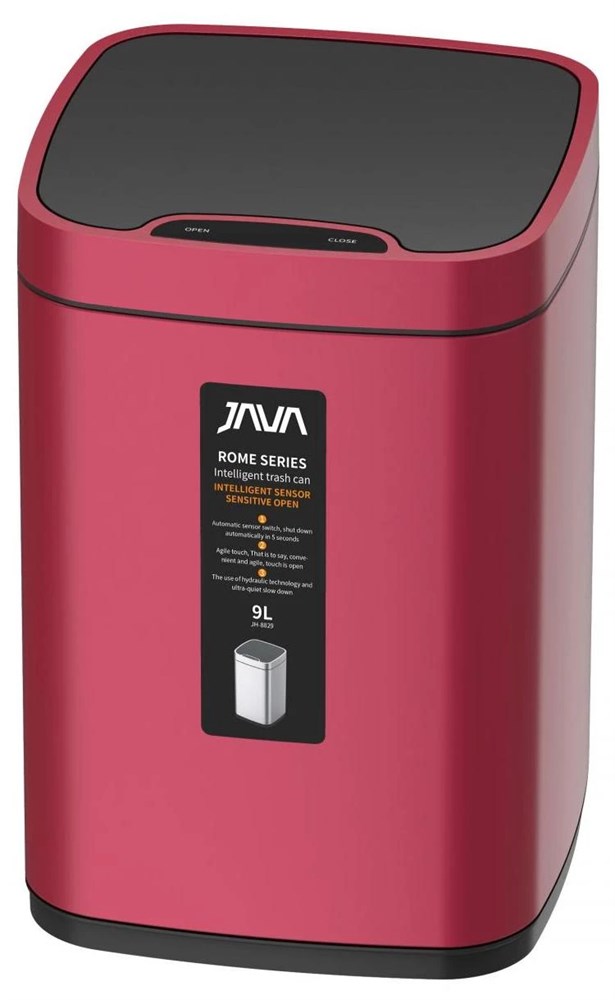 Сенсорное ведро 9 л JAVA (S-883-9R). Комплектация: Мусорное ведро, инструкция.
