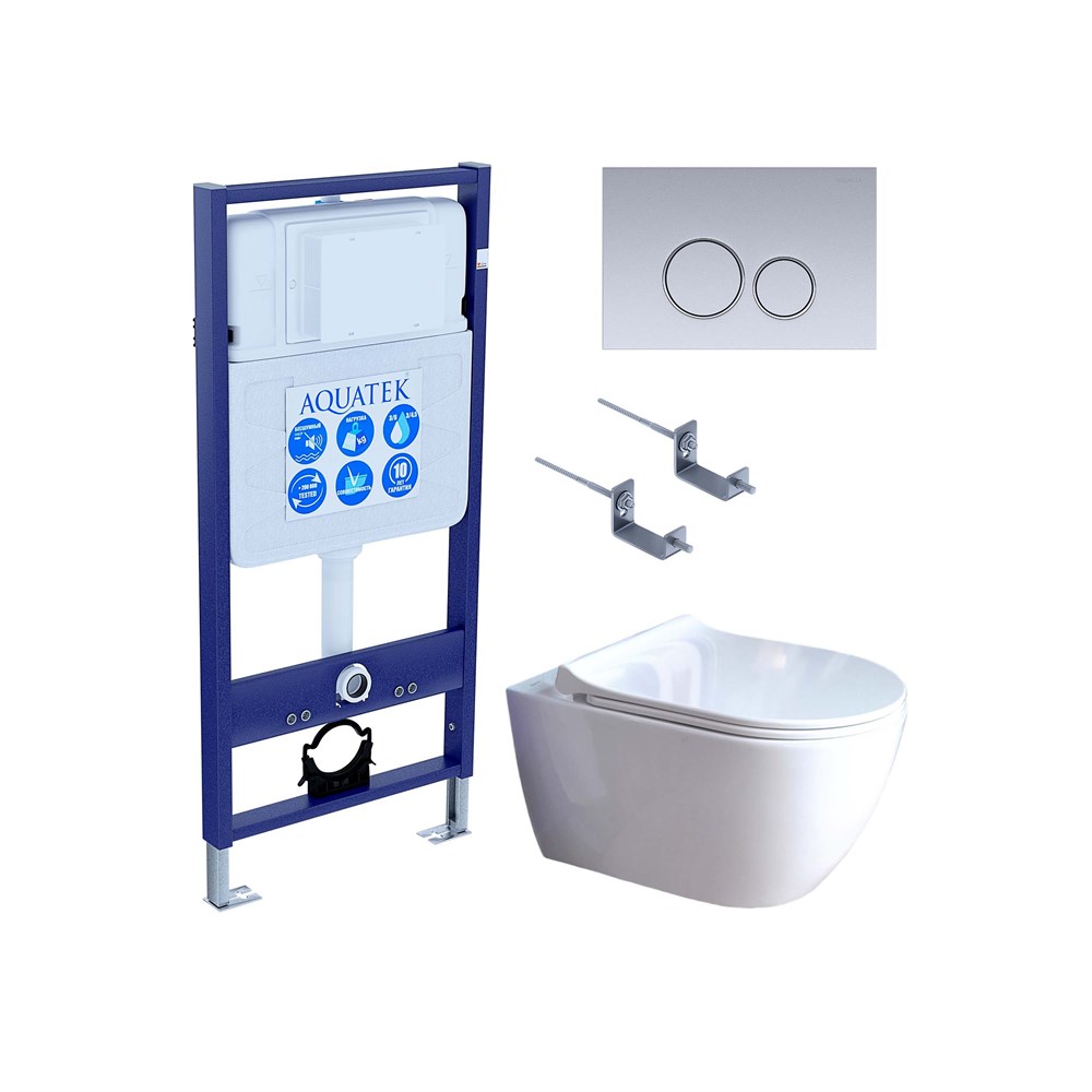 SET AQUATEK ПОЛАРИС (рама AQUATEK Standard INS-0000012 + унитаз ПОЛАРИС AQ0700-01 с тонким сиденьем soft-close + крепеж KKI-0000002 + панель KDI-0000019)
