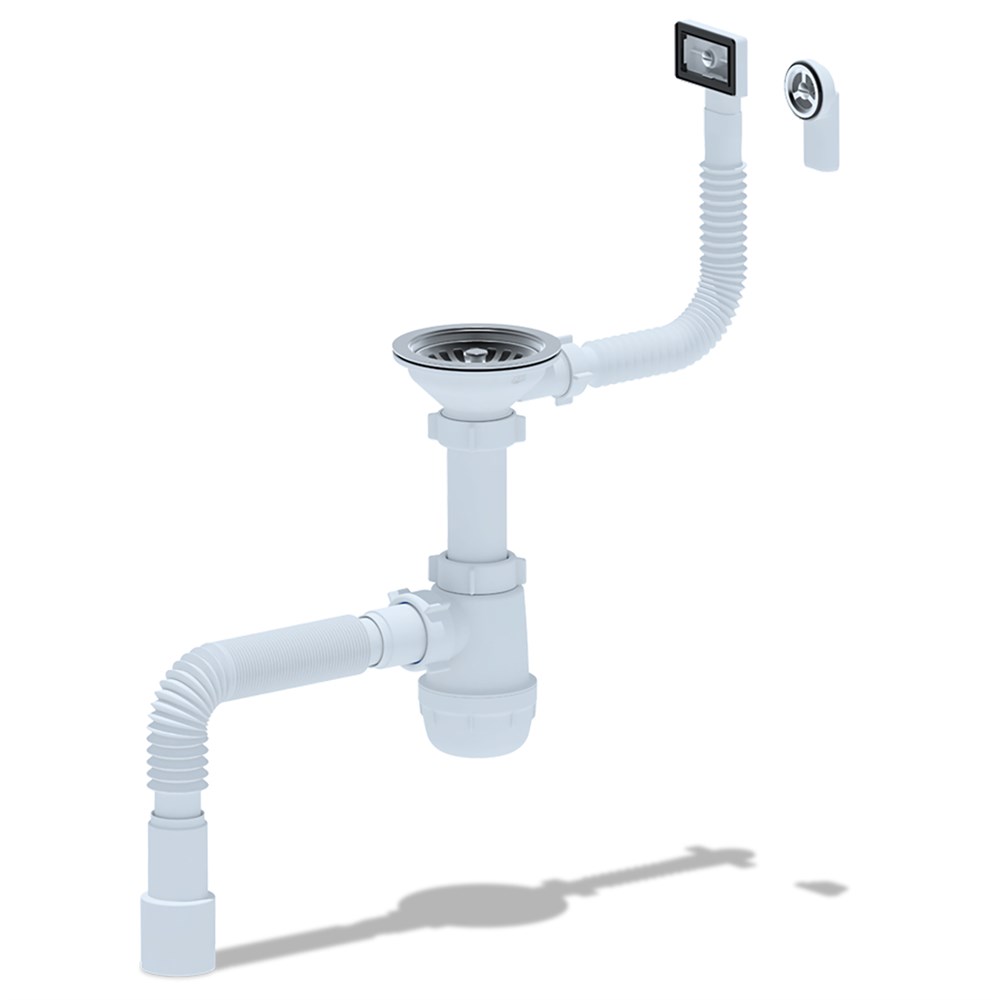 • Сифон сливной АНИ пласт A0145DIY для кухонных моек с диаметром сливного отверстия 90-98мм, с переливом
