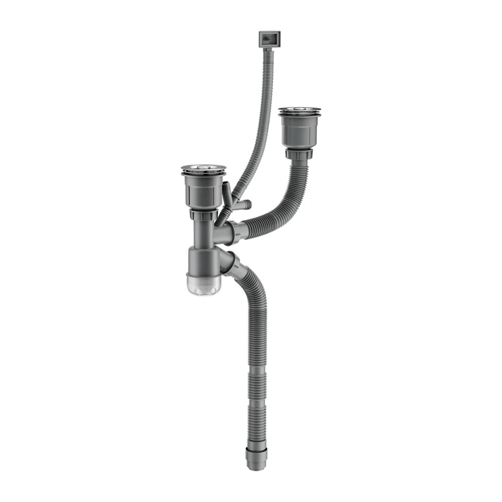 Сифон для мойки Splenka двойной 1-уровневый с прямоугольным переливом, нержавеющая сталь, сатин (S600.41.05)
