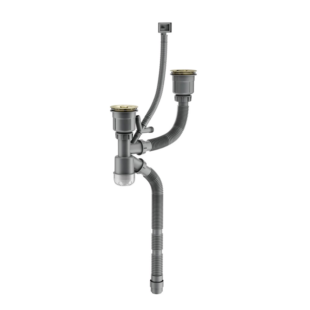 Сифон для мойки Splenka двойной 1-уровневый с прямоугольным переливом, нержавеющая сталь, сатин золотой (S600.41.03)