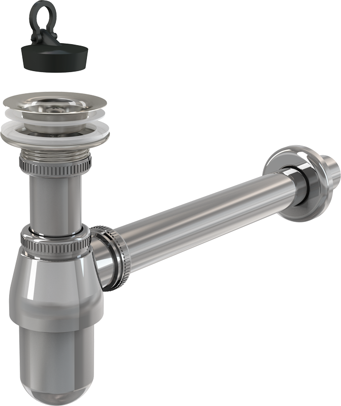 Комплект цельнометаллического сифона и сливного клапана раковины
