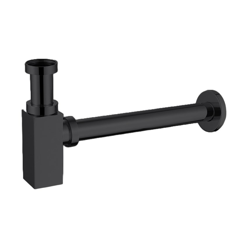 Сифон без выпуска для умывальника G 1 1/4 латунь, квадрат, ЧЕРНЫЙ, матовый, блистер. AZARIO, AZ-109-BL