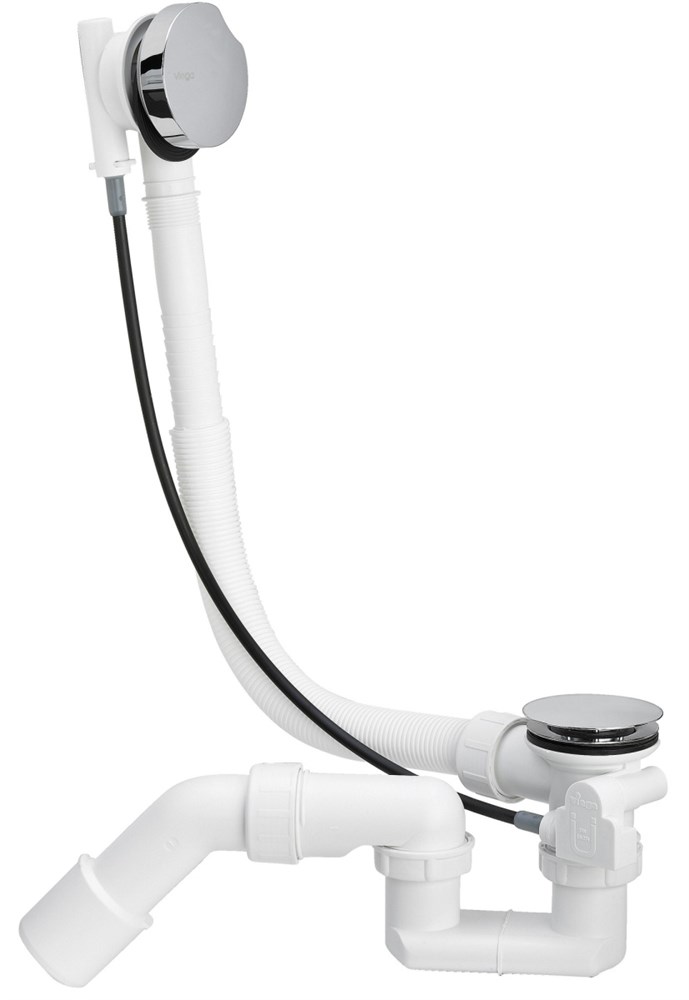 Комплектация: гибкая переливная труба, хромированная поворотная накладка переливного отверстия (верхняя), хромированная пробка донного клапана со штоком, гидрозатвор, сливное колено 45°, донный клапан - нержавеющая сталь.