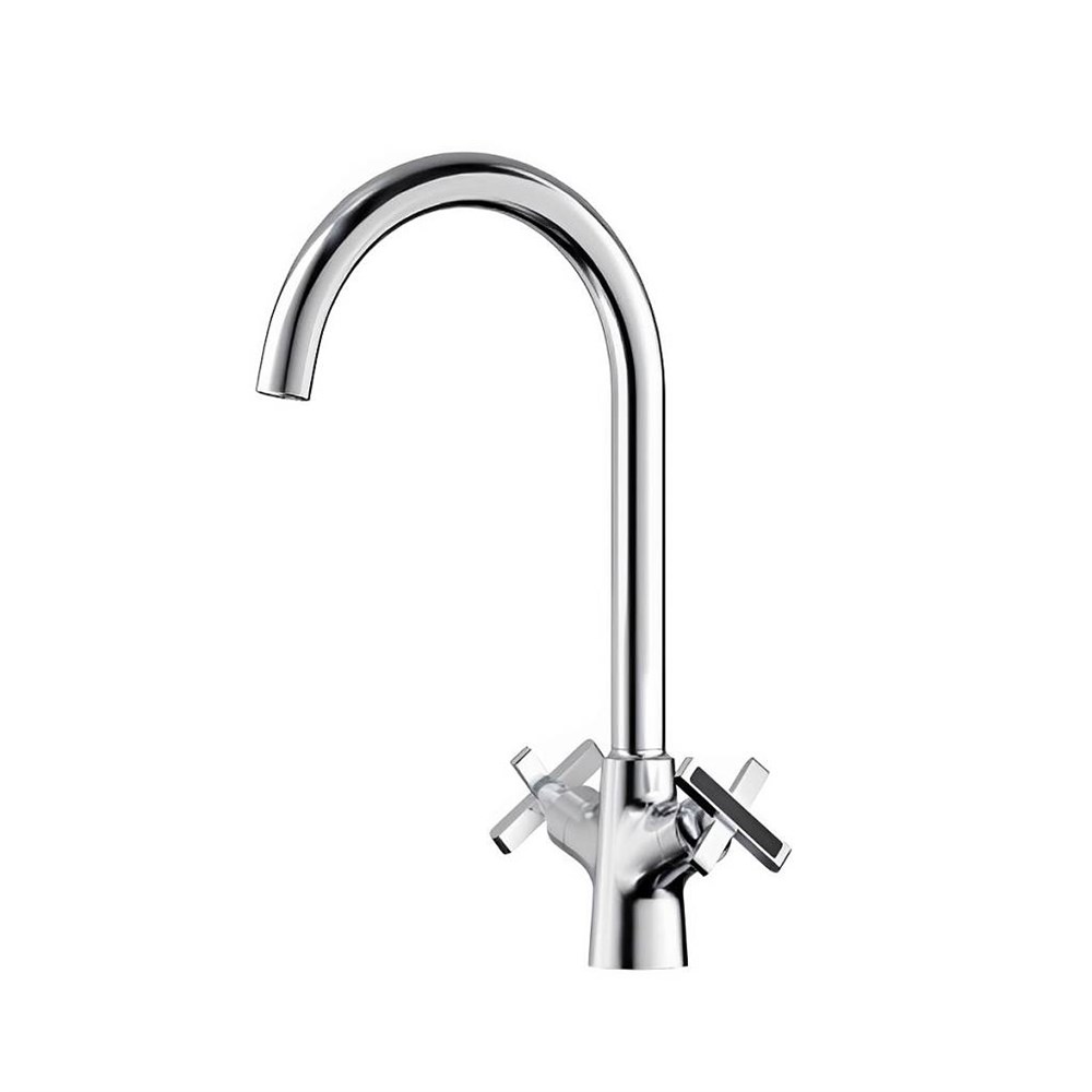 Высокий смеситель для кухни BELZ. Поворотный излив. Съемный аэратор. Гибкая подводка 45 см. Усиленная гайка крепления смесителя.