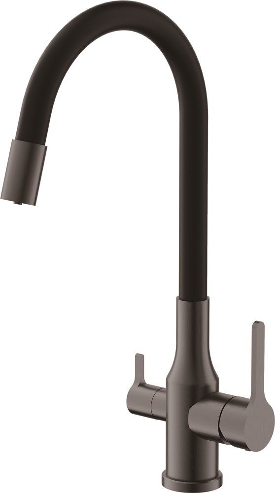 Смеситель для кухни BELZ корпус оружейная сталь излив черный (B76814-3)