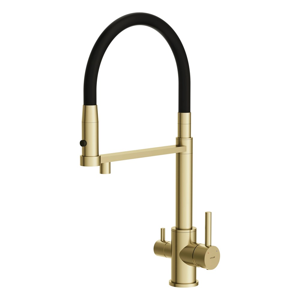 Смеситель для кухни Cersanit ZEN однорычажный с фильтром с гибким изливом золотой (68251)