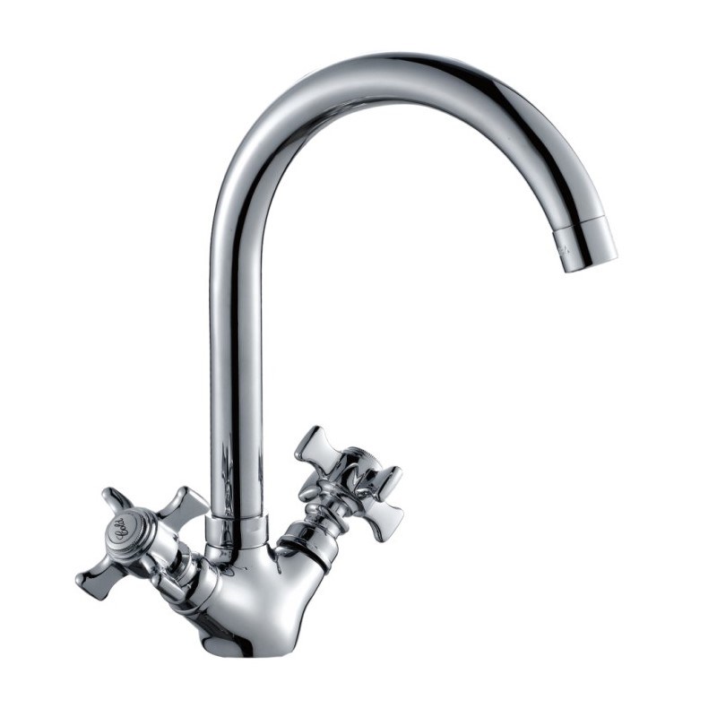 Смеситель для кухни бренда Haiba. Изготовлен из латуни. Укомплектован аэратором. Гибкая подводка 40 см. С поворотным изливом.