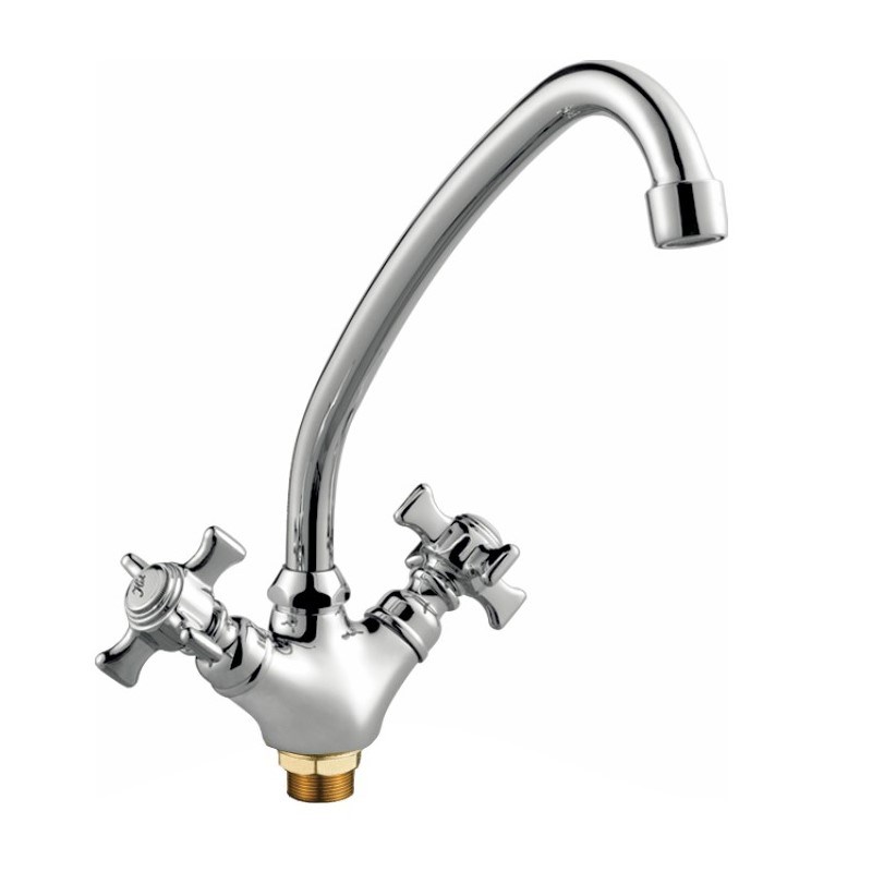 Смеситель для кухни бренда Haiba. Изготовлен из латуни. Укомплектован аэратором. Гибкая подводка 40 см. С поворотным изливом.