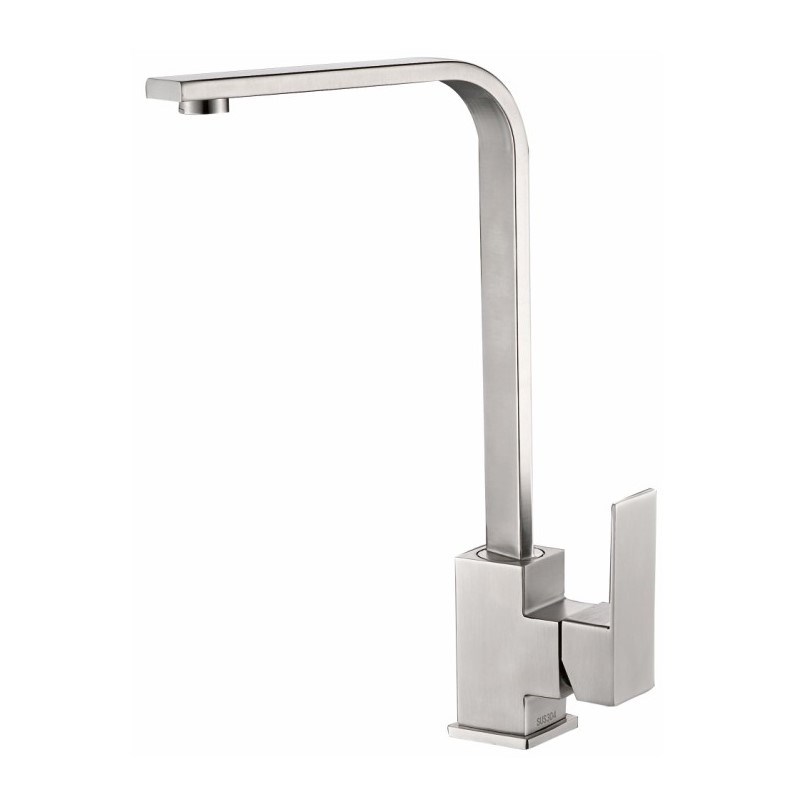 Смеситель для кухни бренда Haiba. Изготовлен из нержавеющей стали. Картридж 35 мм. Укомплектован аэратором. Гибкая подводка 40 см. С поворотным изливом.