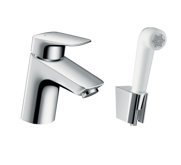 Смеситель для раковины Hansgrohe Logis 70, без сливного гарнитура, с гигиеническим душем, однорычажный, белый/хром (71290000)