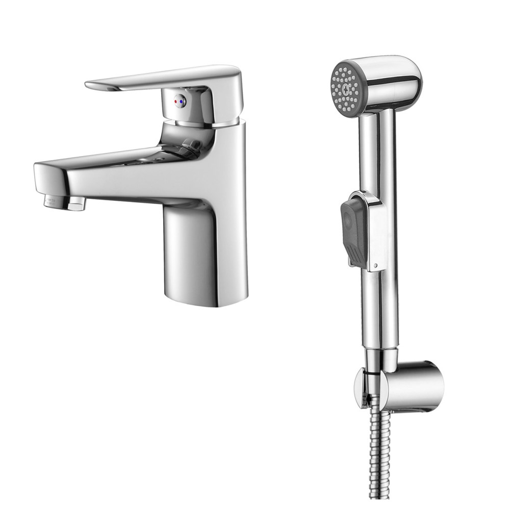 Смеситель для раковины с гигиеническим душем Azario керамический картридж, хром (AZ-HU245911)