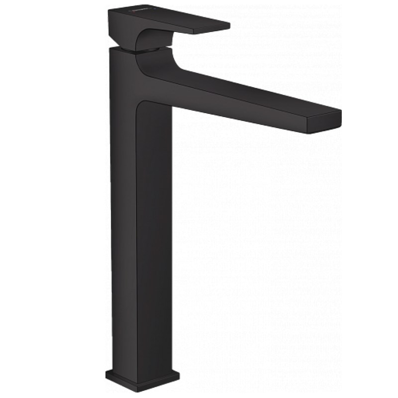 Смеситель для раковины в форме таза 260, Metropol однорычажный, с рычаговой рукояткой, со сливным клапаном Push-Open, матовый черный 32512670