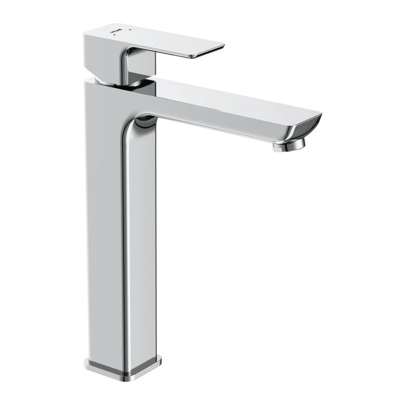 Высокий смеситель для раковины Geo с отточенными линиями будет прекрасным дополнением умывальной зоны с накладной раковиной. Благодаря рельефному корпусу блики света красиво отражаются в гранях смесителя, что делает его ещё более эффектным.