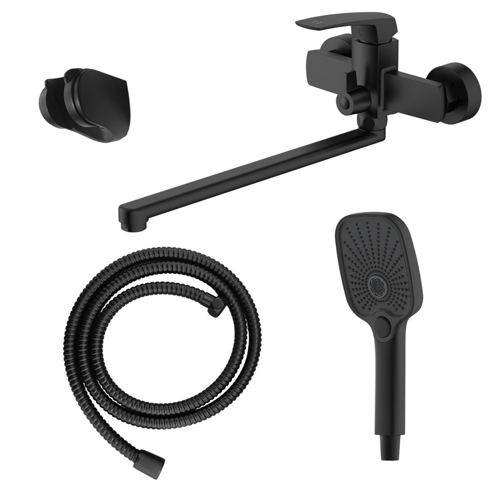 Смеситель для ванны Azario Conda керамический картридж, длинный излив, с ручным душем, шланг 150 см, черный матовый (AZ-K1711B)