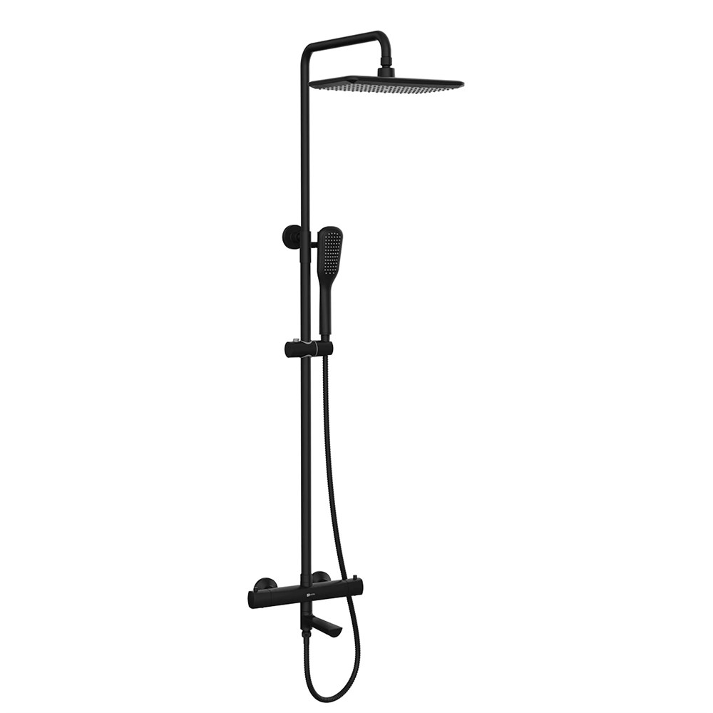 Смеситель для ванны и душа Lemark Ursus термостатический с регулируемой высотой штанги и лейкой верхнего душа «Тропический дождь» (LM7272BL)
