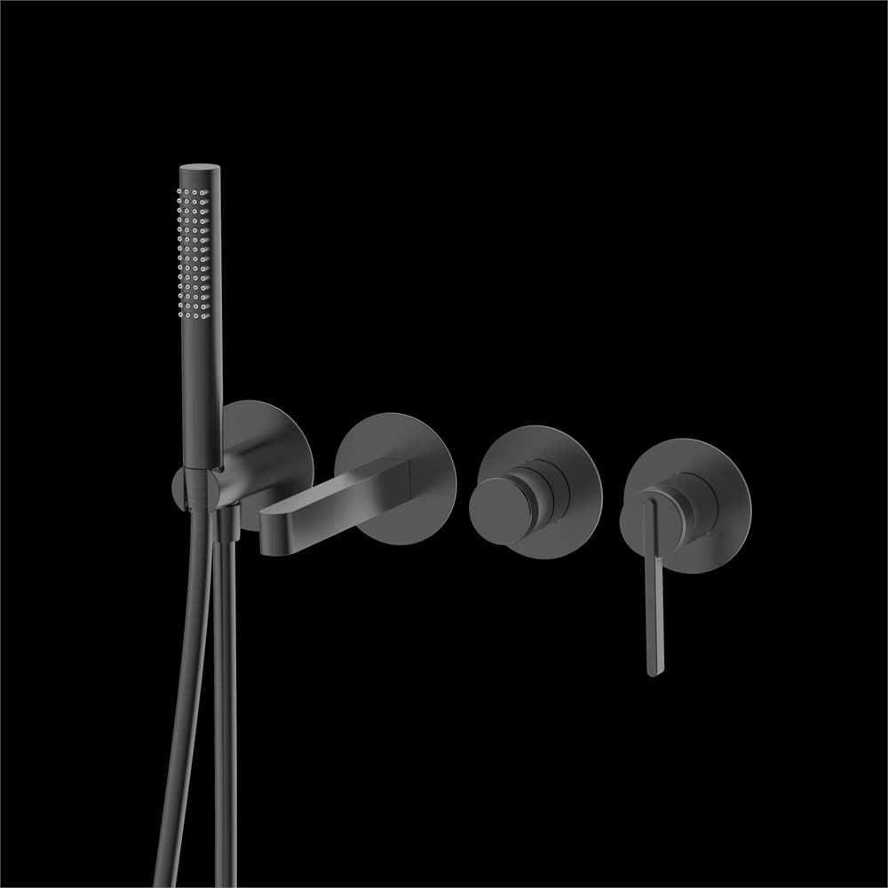 комплектациясмеситель: внутренний блок смесителя, ручка 1шт, излив 1шт, переключатель 1шт, держатель душевой лейки 1шт, душевая лейка 1-режим, шланг душевой 1,5м PVC, паспорт изделия, брендовый пакет