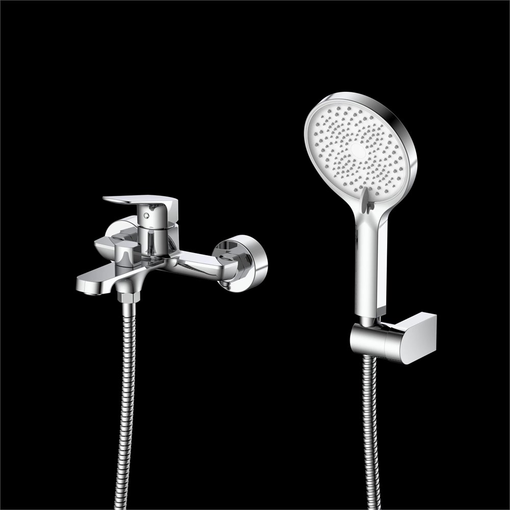комплектациясмеситель, эксцентрики-2шт, декоративная шайба (отражатель)-2шт, шланг душевой 1,5м PVC, лейка душевая 3 режима, держатель душевой лейки, паспорт изделия, брендовый пакет