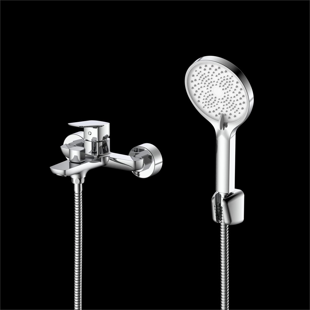 комплектациясмеситель, эксцентрики-2шт, декоративная шайба (отражатель)-2шт, шланг душевой 1,5м PVC, лейка душевая 3 режима, держатель душевой лейки, паспорт изделия, брендовый пакет