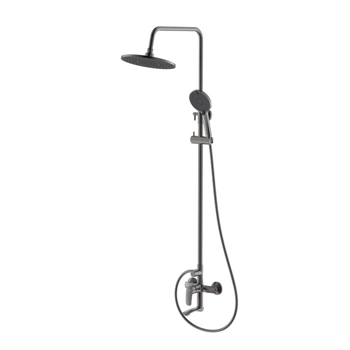 • Четырехрежимная ручная лейка (o 120 мм) с держателем, ПВХ-шланг (1,5 м), штанга для душа с возможностью регулировки по высоте и крепеж идут в комплекте.