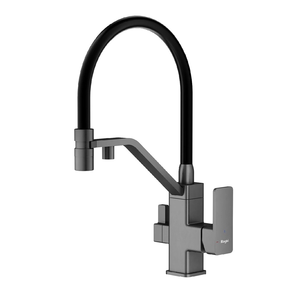 Смеситель Raglo для кухни с подключением к фильтру съёмный гибкий излив с магнитным фиксатором, графит (R85.62.09)