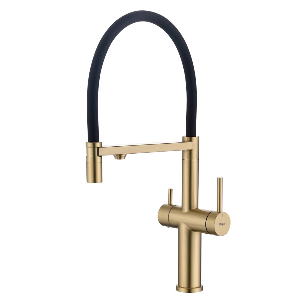 Смеситель Raglo для кухни с подключением к фильтру съёмный гибкий излив с магнитным фиксатором, сатин золотой (R20.63.03)