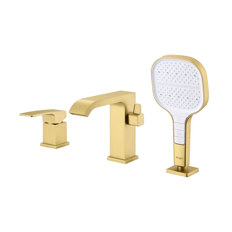 Смеситель Raglo на борт ванны врезной монолитный, сатин золотой (R02.31.03)