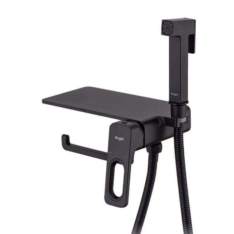 Смеситель Raglo с гигиеническим душем встраиваемый с полкой и держателем бумаги, черный (R51.55.06)