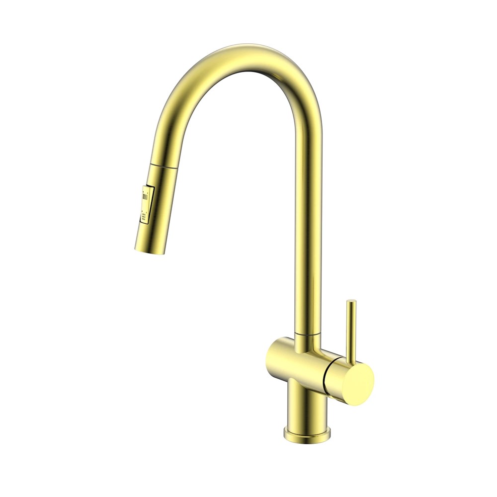 Смеситель Splenka для кухни 2-х режимный поворотный выдвижной излив, сатин золотой (S204.49.03)