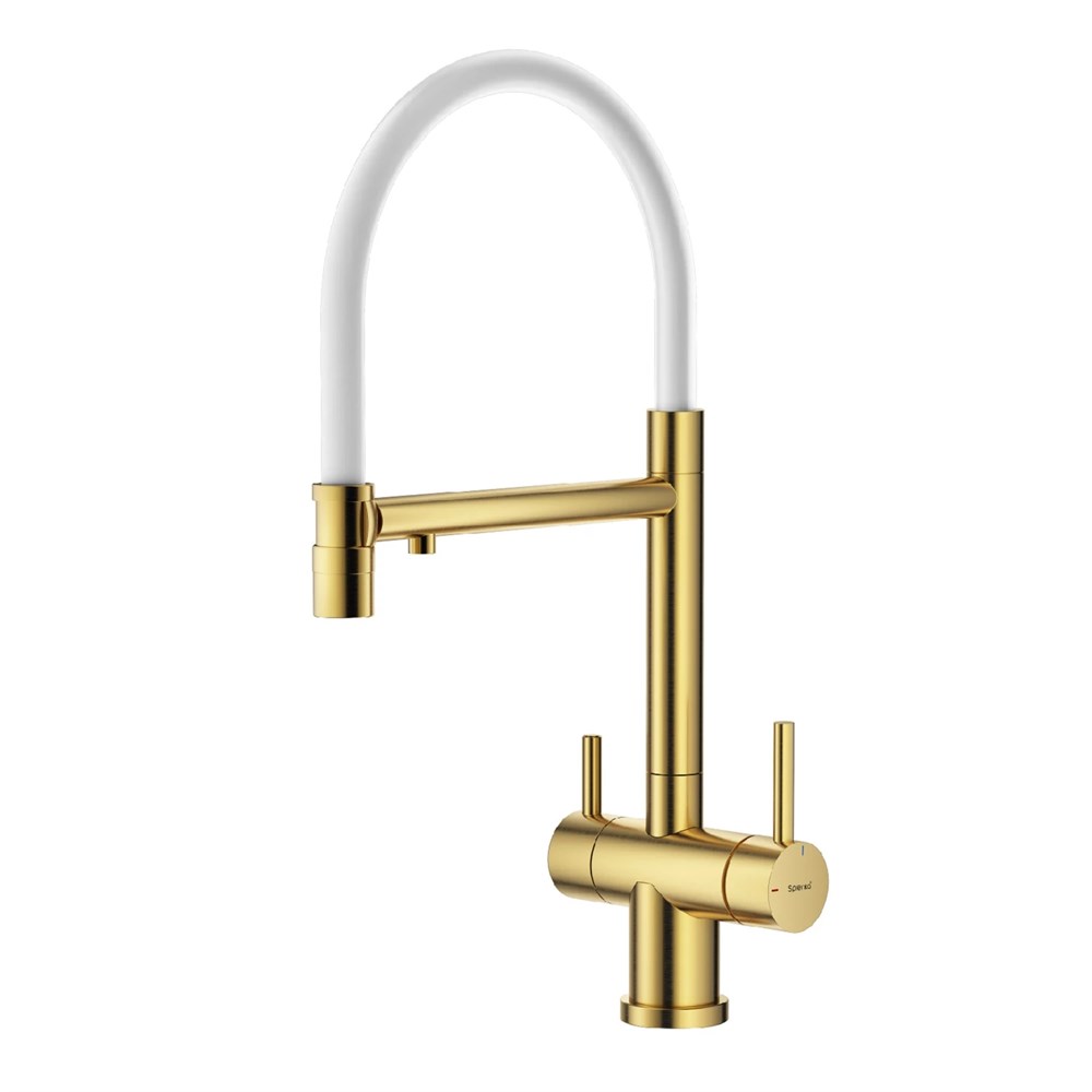 Смеситель Splenka для кухни с подключением к фильтру съёмный гибкий излив с магнитным фиксатором, сатин золотой (S70.63.03)