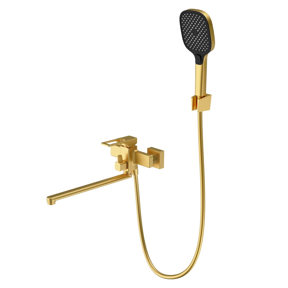 Смеситель Splenka для ванны и душа универсальный поворотный излив 35 см, сатин золотой (S55.22.03)