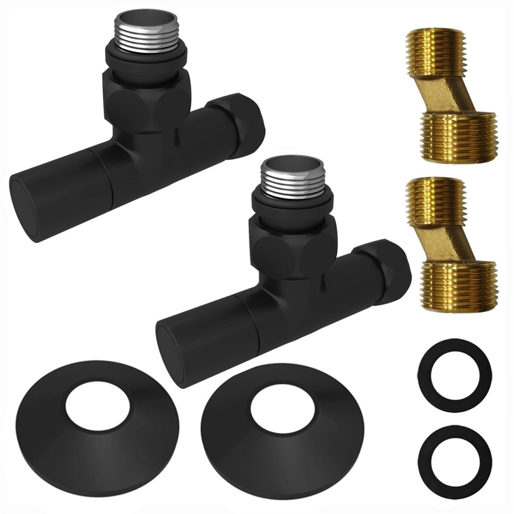 Соединение угловое с круглым вентилем для полотенцесушителей Azario гайка-штуцер 3/4"х1/2", черный (AZ83855FB)