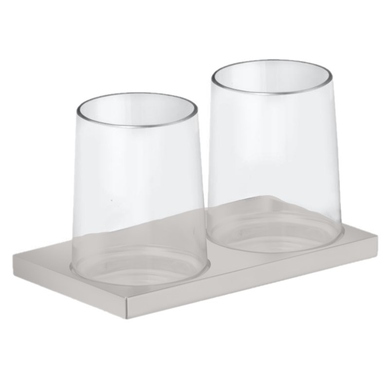 Стакан для зубных щеток KEUCO EDITION 11 11151059000 с двойным держателем для ванной, хрусталь/латунь, никель шлифованный