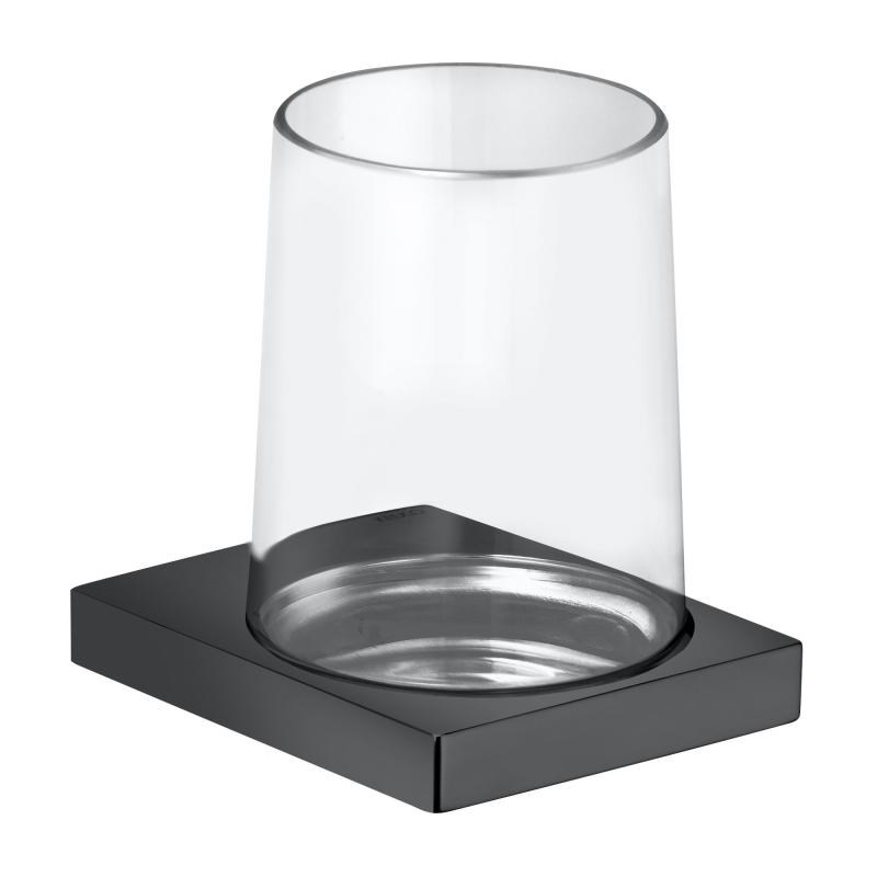 Стакан для зубных щеток с держателем KEUCO EDITION 11 11150139000 для ванной, хрусталь/латунь, хром черный шлифованный, ручная работа