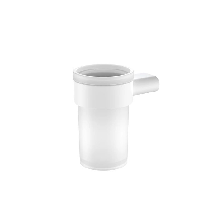 Стильный стакан Petite из матового белого стекла в держателе белого матового цвета.
