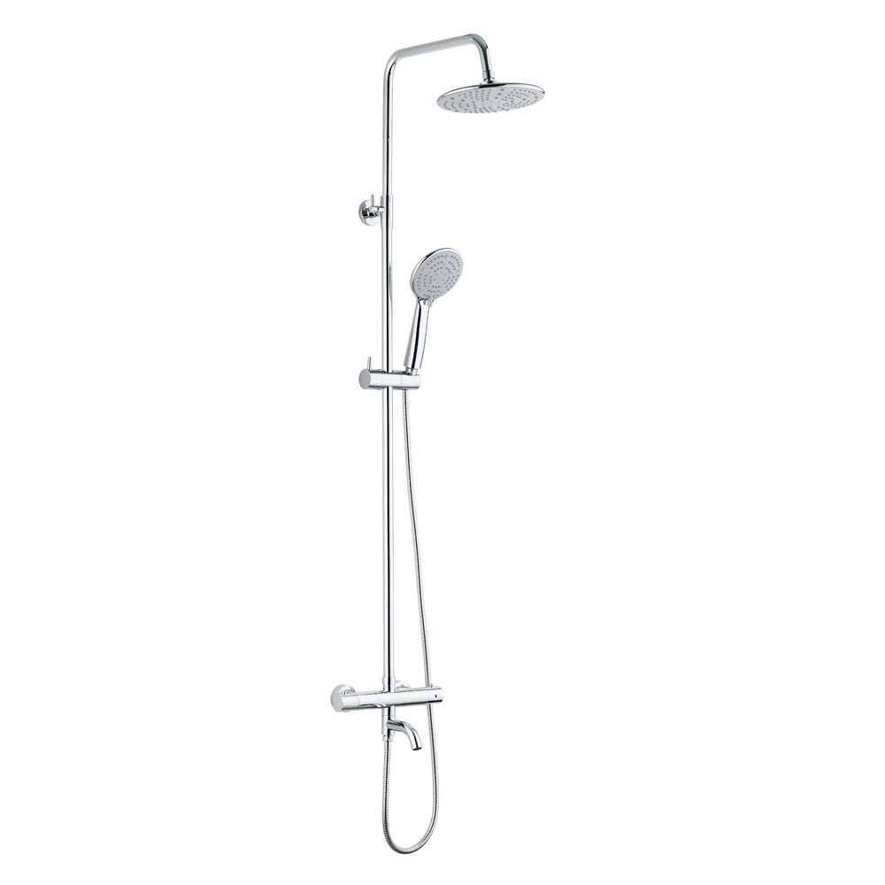 Стойка душевая с терм. смесителем для ванны и верхним душем DUSHA, DUS08-302