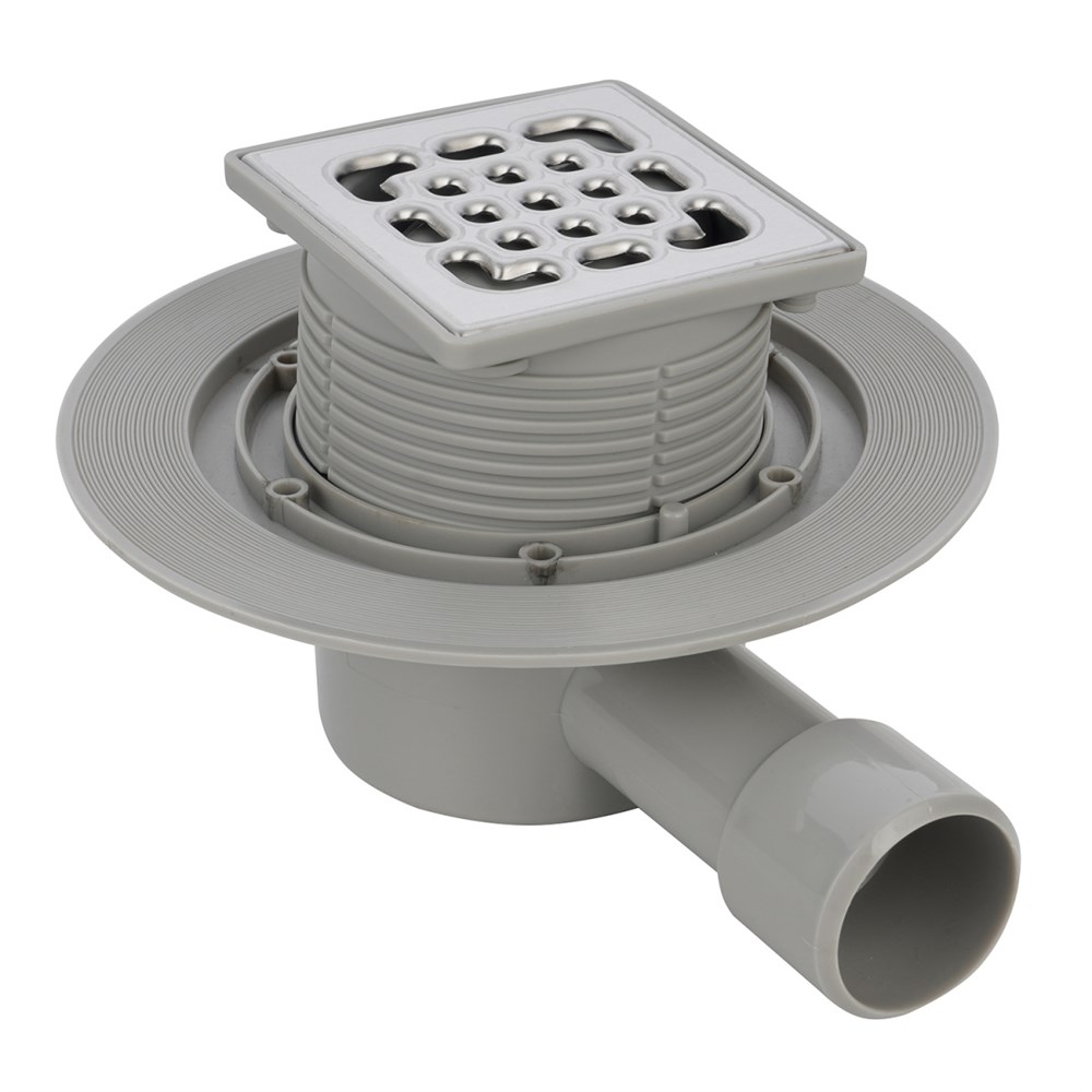 Трап для душа AZARIO 100*100 с металлической решеткой горизонтальный выпуск