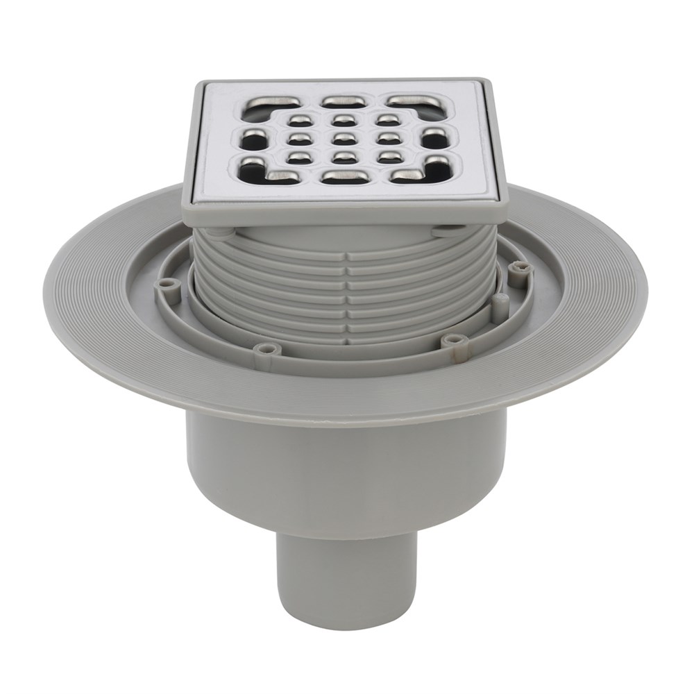 Трап для душа AZARIO 100*100 с металлической решеткой вертикальный выпуск