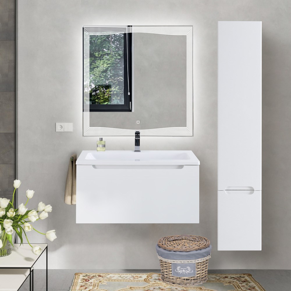Тумба c раковиной подвесная с одним ящиком BelBagno ETNA-M 80 Bianco Lucido, раковина белая