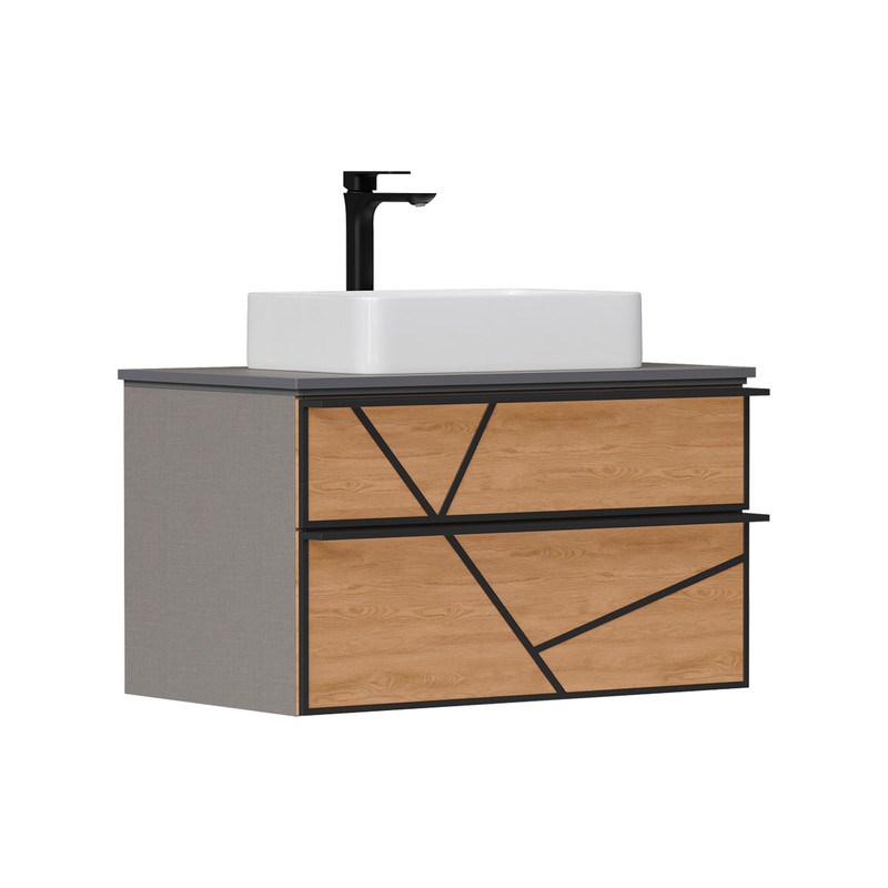 Тумба EQUIL Ferro 80 подвесная 2 ящ. лен антрацит/дуб мадера (под раковину 78531)