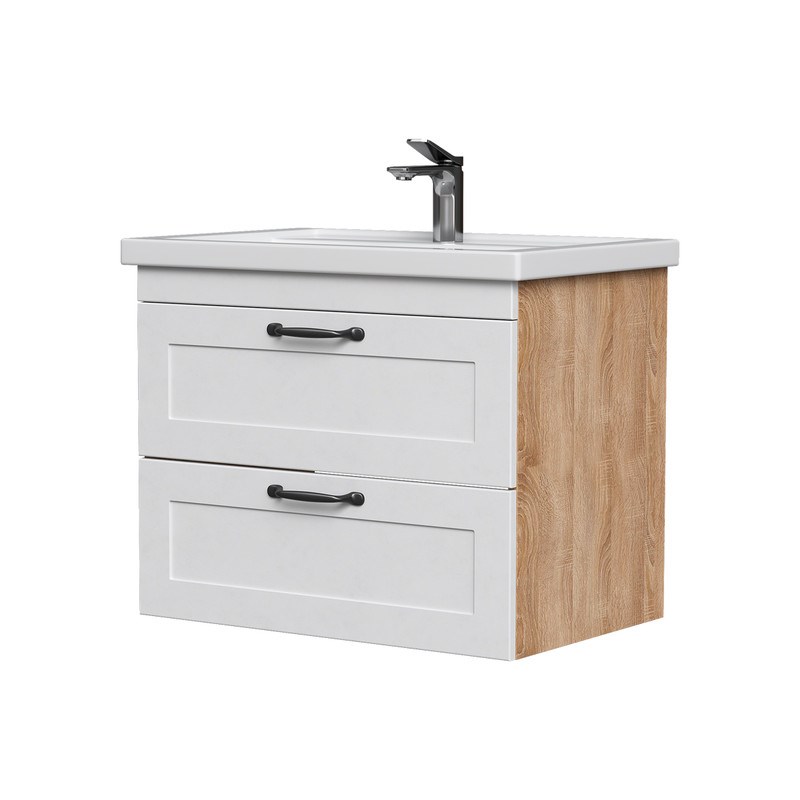 Тумба Lago 70, подвесная, 2 ящ., белый/дерево (под раковину Миранда 70), EQUIL
