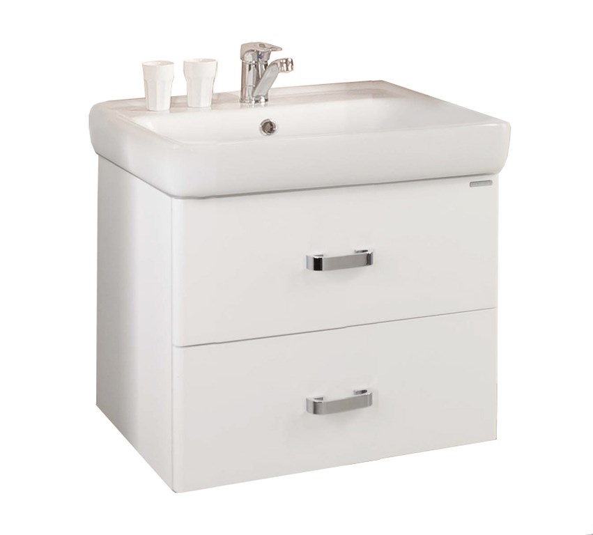 Стильная лаконичная модель, комплектуется прямоугольной керамической раковиной с широкой удобной чашей. В тумбе установлены два ящика, изготовленные из декоративной влагостойкой ДСП.