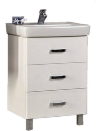 В этой модели уже 3 вместительных ящика и изящные глянцевые опоры. Исполнение на ножках удобно в тех ванных комнатах, где стены недостаточно укреплены и есть сомнение, что они выдержат подвесную мебель.