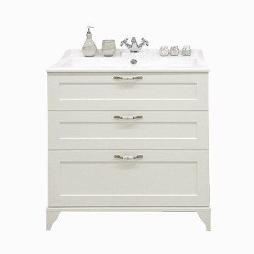 Тумба дополнительно снабжена надежными мебельными навесами. В тумбе установлены 3 ящика, и, помимо стандартного подключения водоснабжения и канализации (из стены), предусмотрена возможность подключения труб снизу.