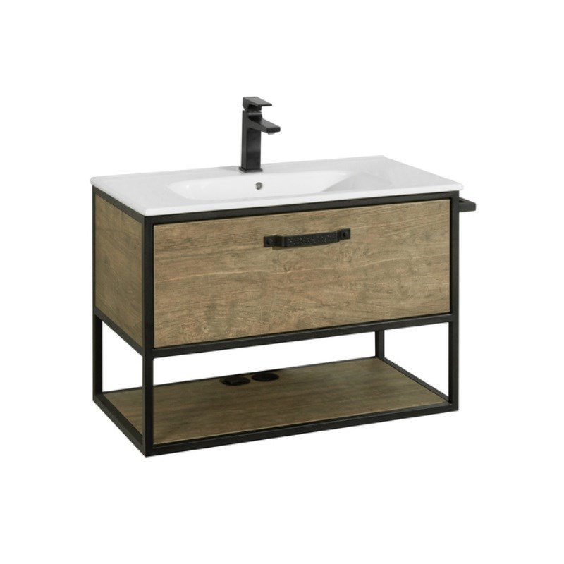 Тумба Лофт Фабрик 80 в цвете Дуб Кантри – это сочетание насыщенного древесного декора и благородства металла.