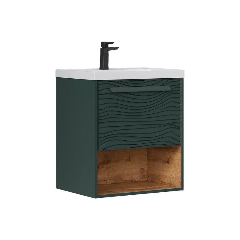 Тумба под раковину EQUIL Gleam 60, подвесная, 1 ящ., зеленый камень/дуб вотан (под раковину 78857-60) (tpGLEAM60.1Y.N-34)