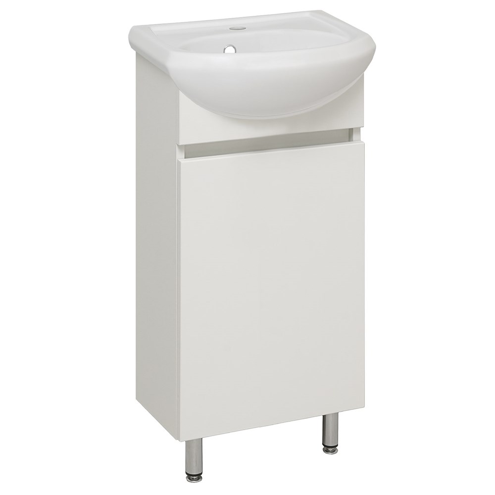 Тумба с раковиной RUNO ЛАДА - модное и оригинальное решение для бюджетного оснащения ванной комнаты. Тумба под раковину ЛАДА (напольная) выполнена в двух цветах - классическом белом и в стильном цвете - графит/серый дуб . Тумба в ванную имеет две распашные дверцы и одну внутреннюю полку. В комплекте идут петли со встроенным доводчиком, 2 хромированные и 2 пластиковые ножки. Тумба для ванной комплектуется раковиной из сантехнического фарфора Манго" (407х330 мм). Раковина имеет глубину 17 см. Мебель для ванной RUNO - красота и практичность в мелочах!"
